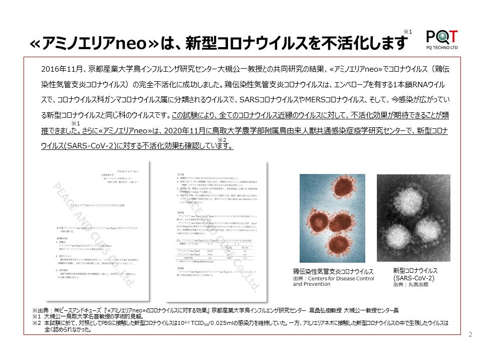 こちらのピーキューテクノさんは、抗ウイルス剤などを製造販売している会社です。