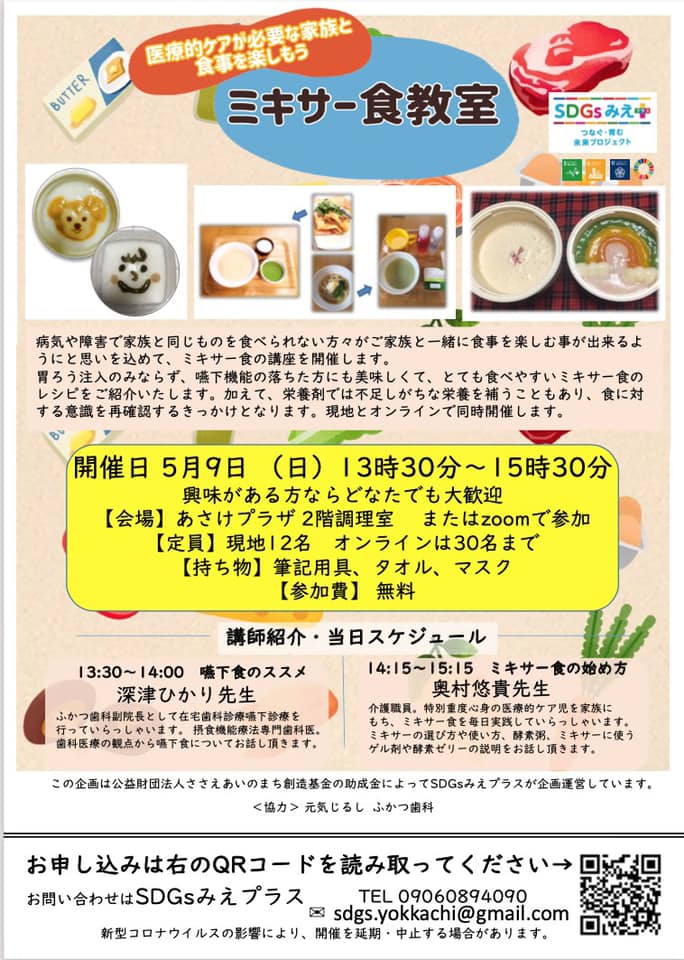 第1回ミキサー食講座は好評をいただき、現在10名以上の方にお申し込みをいただいております