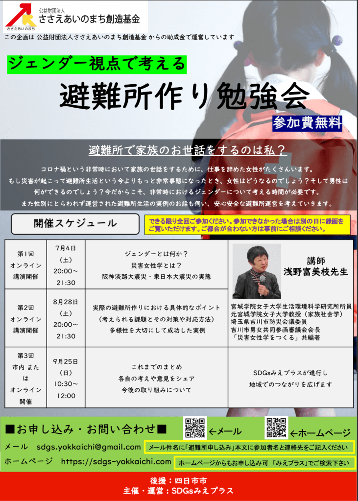 7月4日にオンラインでジェンダー視点で考える避難所作り勉強会を開催します。