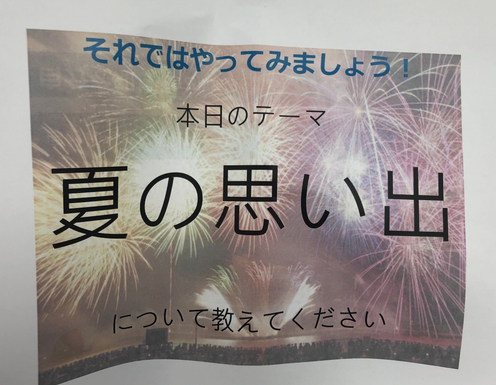 テーブルでご一緒させていただいた皆さんが順番に夏の思い出を発表して、それについてお話をしていきます。私のグループでは、農業をされていた男性が