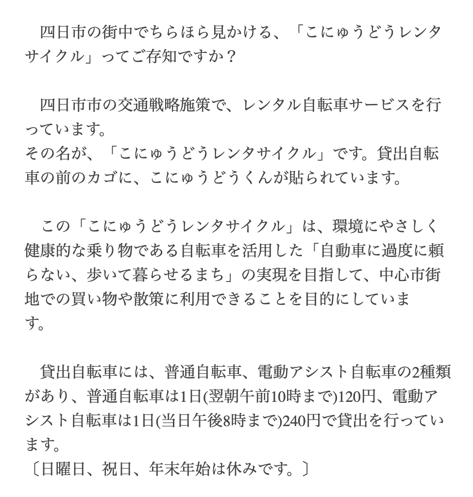 JR四日市駅にも同じレンタサイクルがありますよ。