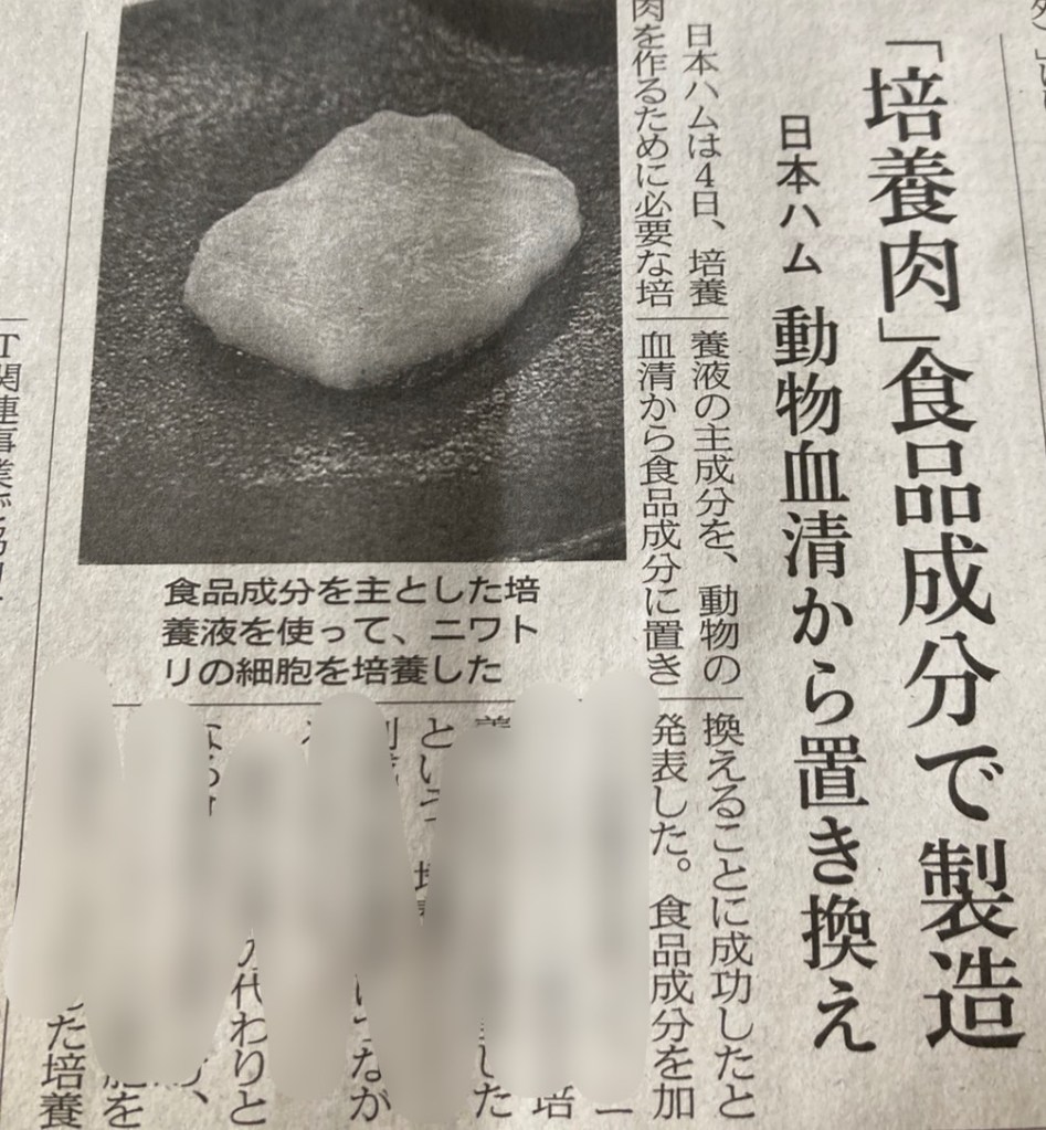 日本ハムさんが、培養肉の製造に成功したという記事です。