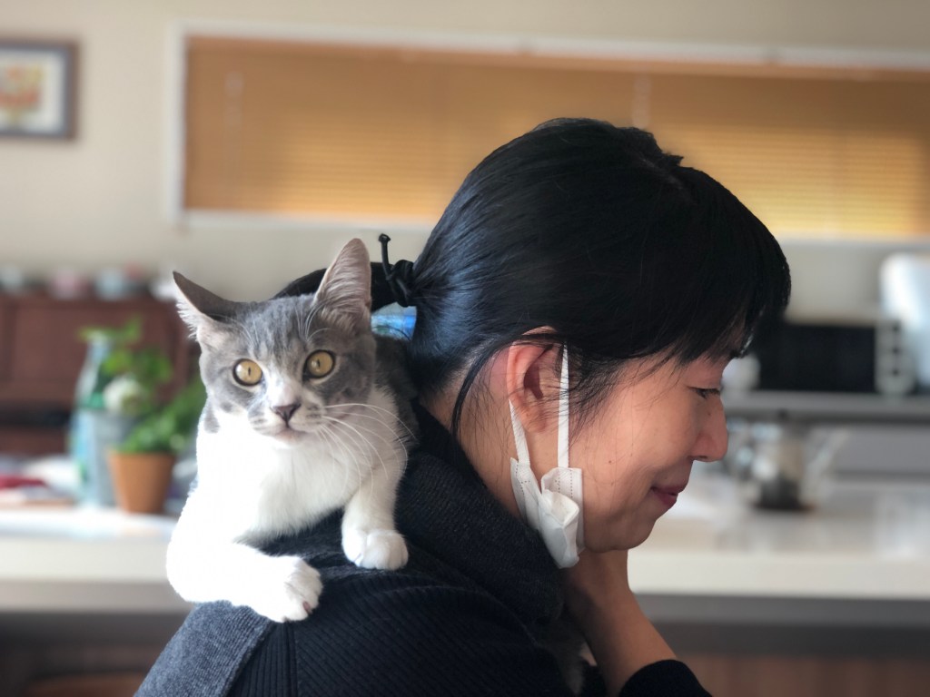 実は、古市は時々猫を肩に乗せて打ち合わせします