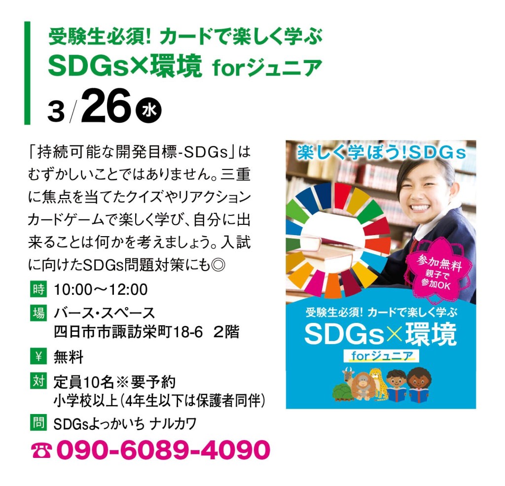 3/29 カードで楽しく学ぶ SDGs×環境 for ジュニア 開催します