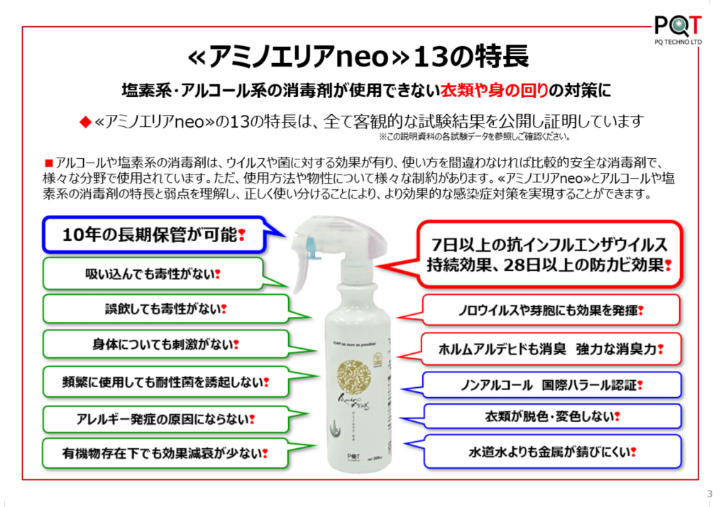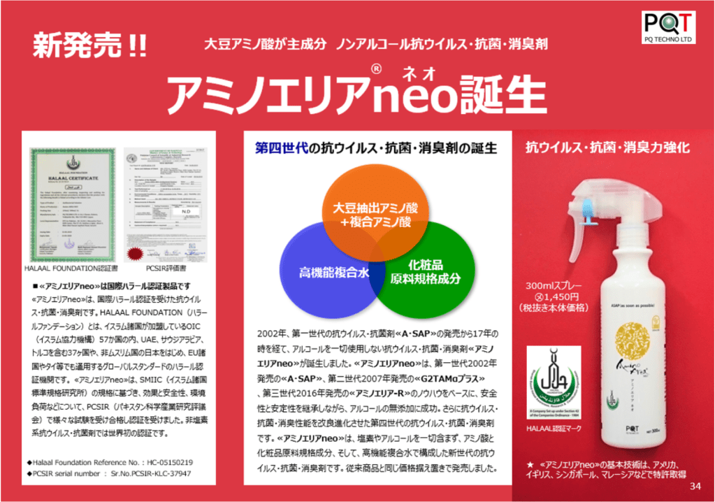 でも、アミノエリアネオなら使えます!世界で求められる商品です。